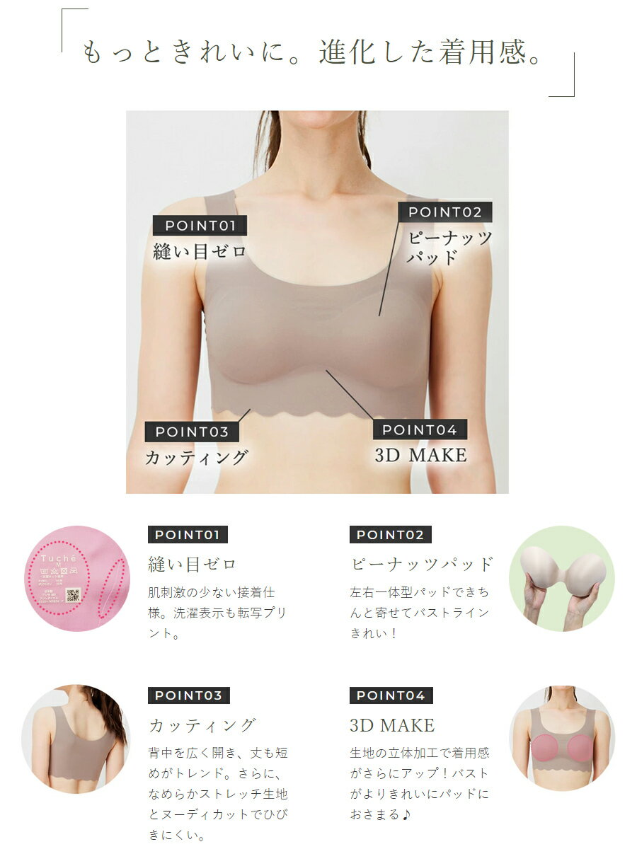 【期間限定 ポイント10倍】【ゆうパケット送料無料】 GUNZE Tuche 縫い目ゼロ ハーフトップ 【日本製】 グンゼ トゥシェ 縫い目なし カットオフ 洗濯タグなし ピーナッツパッド ホックなし パッド取り外し 01-TB2555
