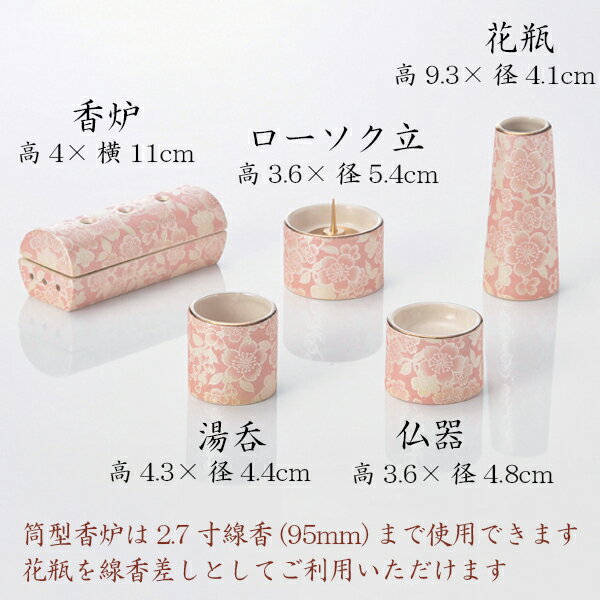 ゆい花 佛具5点筒型香炉セット 桜仏具 仏壇 国産 ペット仏具 お盆 お彼岸 【おまけ付き】 送料無料