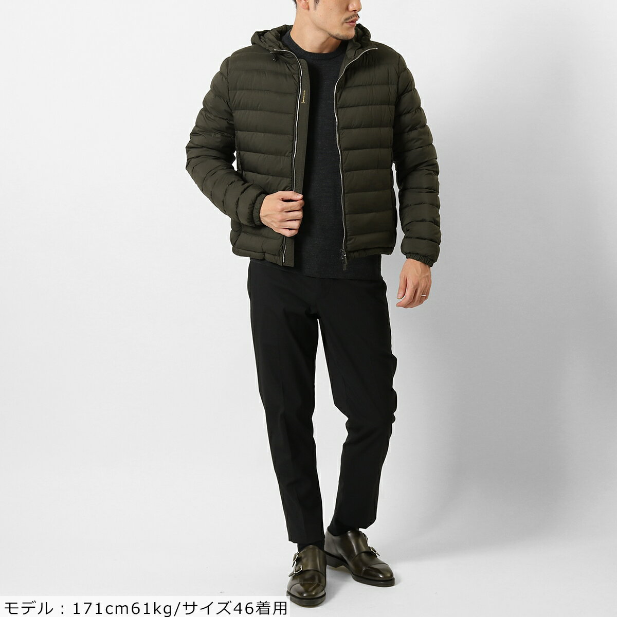 素材 表地:ポリアミド95%、ポリウレタン5% 裏地:ナイロン100% 中綿:ダウン92% フェザー8% 裏側に生地を撥水性でダウンプルーフにするためのコーティング加工が施されたソフトなタッチのとてもライトなマットの生地で製作されたグースダウンキルティングのミッドシーズン向けのフード付きブルゾン。